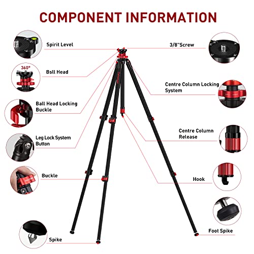 Design telescopico rapido: ogni gamba ha un sistema di bloccaggio automatico, azionato nella parte superiore del treppiede fornendo una scelta di tre angoli di blocco gamba per impostare con angolo di 22°, 50°, 80°. Le fibbie di regolazione della gamba possono bloccare in modo sicuro di volta in volta senza pizzicare il palmo.