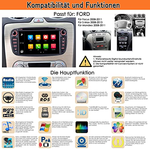 【Compatibile con Ford】 : Per Ford Mondeo (2008-2011), Focus Focus (2008-2011), Focus S-Max (2008-2013). ✔ Equipaggiamento opzionale: telecamera per retromarcia +(EUR)