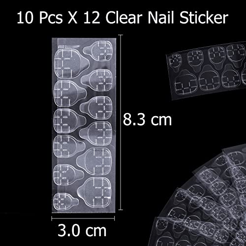 10 fogli adesivi biadesivi (12 schede per foglio), 12 schede diverse dimensioni in ogni foglio, adatto per ogni unghia.