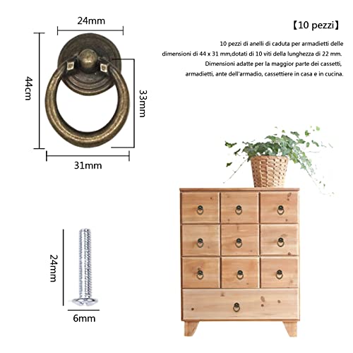 IFUDE 10 Pezzi Manopole per Armadi in Bronzo Pomelli per Mobili Cassetti,Vintage Maniglia a Tiretto Bronzo Pomelli ad Anello per Cucina Cassetti Armadi Armadietti Comò
