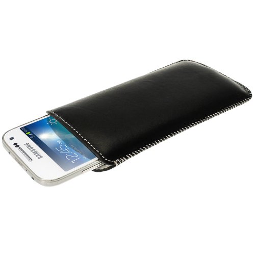 IGadgitz Nero Pelle Custodia Pouch Case Cover per Samsung Wave 3 Bada 2.0 S8600 & Samsung Galaxy S4 SIV Mini I9190 I9195 Smartphone