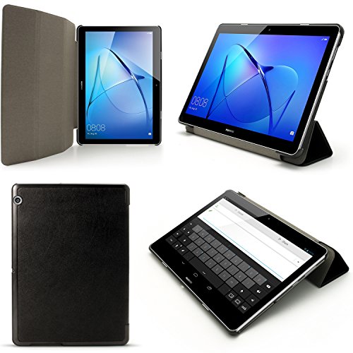 Igadgitz Premium Nero Eco-Pelle Smart Cover Custodia per Huawei MediaPad T3 10'' con Supporto Multi-Angle + Auto Sleep/Wake + Pellicola