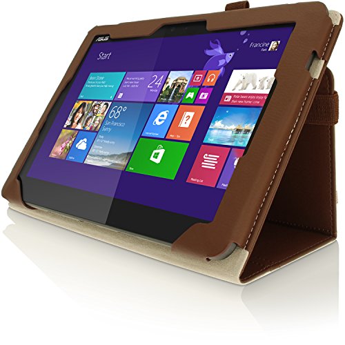 Igadgitz Premium Portafoglio Marrone Eco Cover Custodia Pelle per Asus Transformer Pad TF103C 10.1" con Supporto Multi-Angle + Supporto Elastico per Penna Stilo + Protettore Schermo