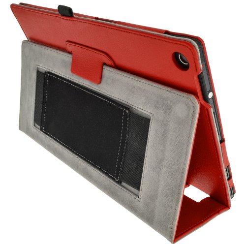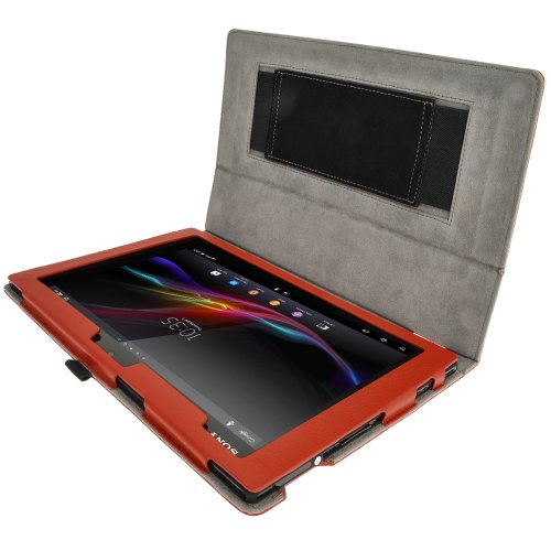 Igadgitz Premium Portafoglio Rosso Ecopelle Custodia Cover per Sony Xperia Z 10.1" Tablet con Cinghia + Supporto Multi-Angle + Auto Sleep Wake + Pellicola