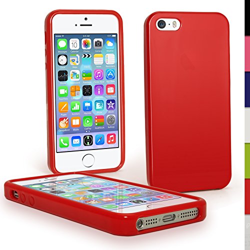 Igadgitz U1180 Custodia TPU per Apple iPhone 5 & 5S Cover con Pellicola - Rosso