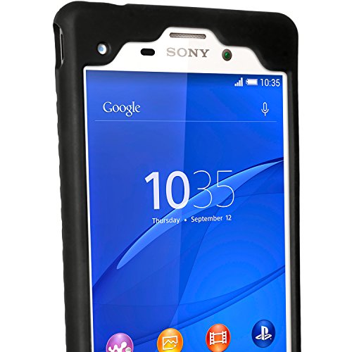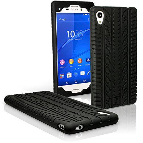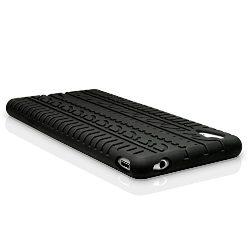 Igadgitz U3897 Pneumatico Custodia Silicone per Sony Xperia M4 Aqua E2303 Cover con Pellicola - Nero
