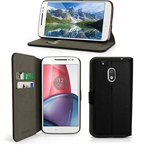 Fatta su misura, custodia di eco-pelle Compatibile con Motorola Moto G4 Play XT1601 (4a Gen) 2016, con ritagli Compatibile con l'orificio del caricatore, presa Compatibile con le cuffie e fotocamera. Include slots Compatibile con carte di credito e debito assieme a una tasca Compatibile con contenere appunti, bigl