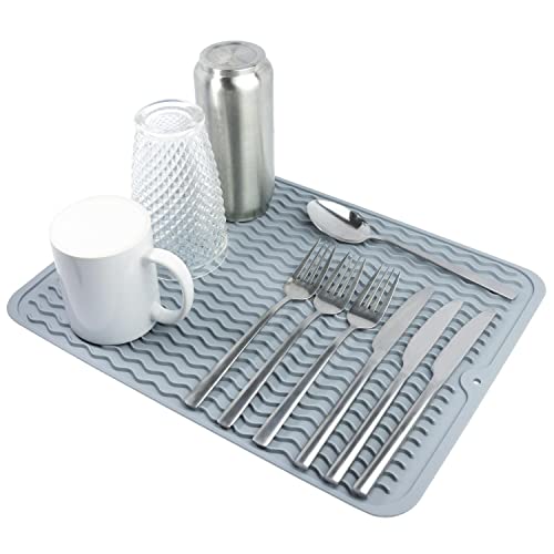 Igadgitz Home U7228 Sgocciolatoio per Lavello Silicone, Tappetino Lavello Cucina, Tappetino Scolapiatti Silicone, Tappetino Lavandino - Grigio