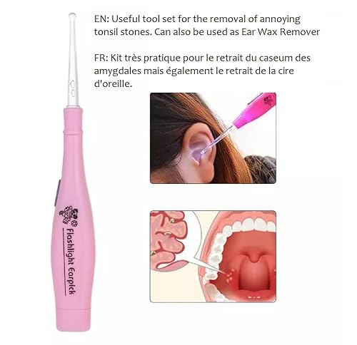 Kit igiene cura orecchio, siringa di lavaggio per naso e orecchie, pipetta estrazione caseum tonsillare, 3 punte con LED, SAV France