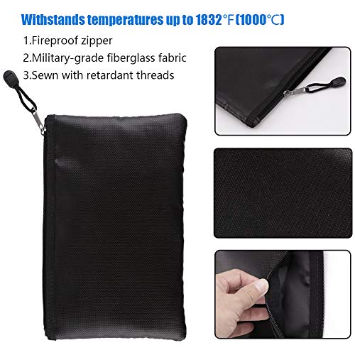 Ignifuga Borsa, A4 Borsa portadocumenti ignifuga in fibra di vetro resistente all'acqua Borsa Cassaforte grande per denaro, foto, gioielli, passaporto Contanti (nero, 13,2"× 10")