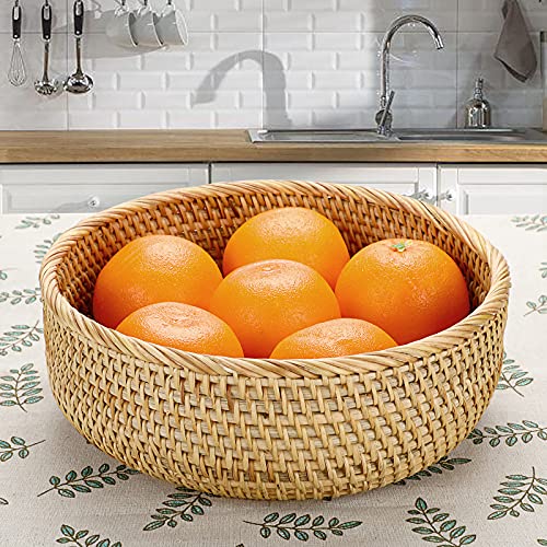 IGNPION Cesto rotondo in rattan intrecciato per frutta, pane, snack, tavolo, tavolo, piano di lavoro, decorativo, cestini portaoggetti