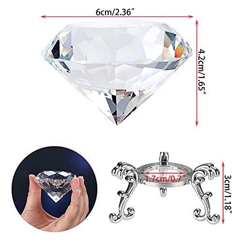 IGNPION Fermacarte in vetro K9, con base a diamante, 60mm, in vetro trasparente, a forma di diamante, decorazione con gemma in vetro scintillante, ufficio, decorazione matrimonio