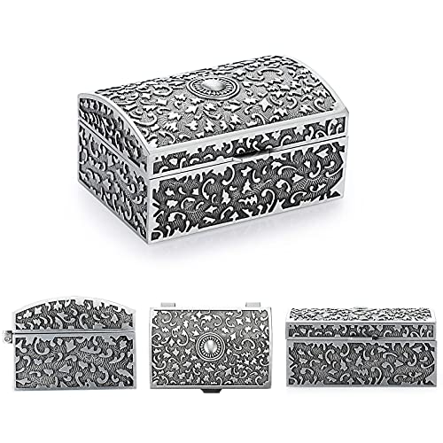 IGNPION Portagioie in metallo piccolo portagioie per anelli, collane, orecchini, gingilli, organizer in argento antico, mini scatola dei ricordi, piccola