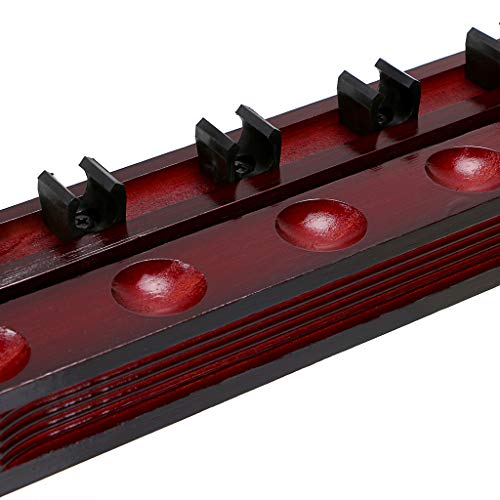 IGNPION Un set di stecca da biliardo, supporto da parete in legno, supporto per stecca da biliardo con 6 clip per stecca per accessori da biliardo e snooker, mogano