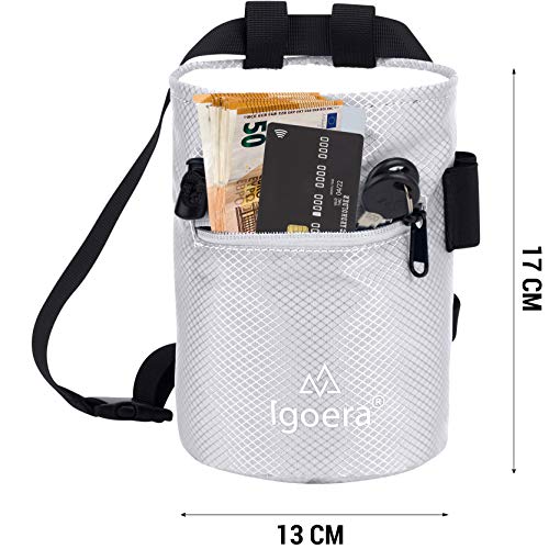 Igoera Chalk Bag Arrampicata I Robusta e Resistente alla Polvere I Include Cintura Regolabile I Porta Magnesite per Migliorare Presa e stabilità (Grigio)