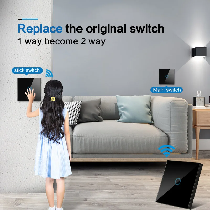 Igreli EU Standard 1/2/3 Gang 2 Way 433mhz Wireless Remote Wall Light Touch Switch Stick Remote Touch Switches