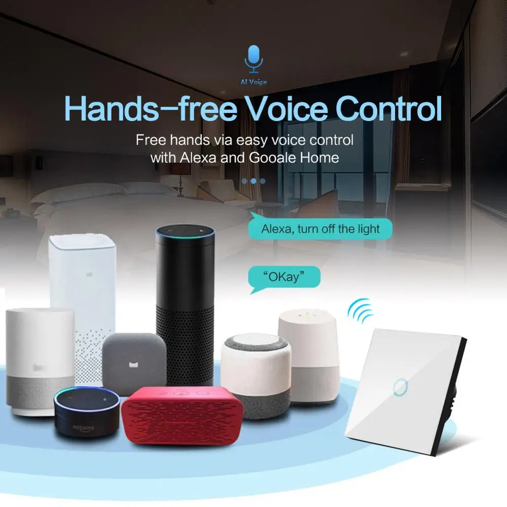 Igreli Wifi Wall Touch Switch 1/2/3 Gang 1 Way Wireless Smart Switches Tuya Or Evelink Support Smart Home For Alexa Google Home