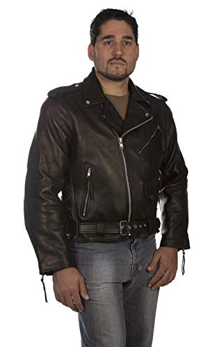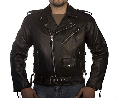 IGUANA CUSTOM Giacca da moto in pelle da uomo in stile rocker incrociato in pelle di prima qualità, con protezioni e fodera termica rimovibile. (5XL)