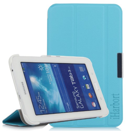 IHarbort a Samsung Galaxy Tab 3 7.0 Lite custodia ultra slim Custodia in pelle Cover con supporto per Samsung Galaxy Tab 3 7.0 Lite T110 T111 Smart Cover Case Stand (Grigio, pu pelle, ultra sottile fine) Galaxy Tab 3 7.0 Lite custodia case (noir-i)
