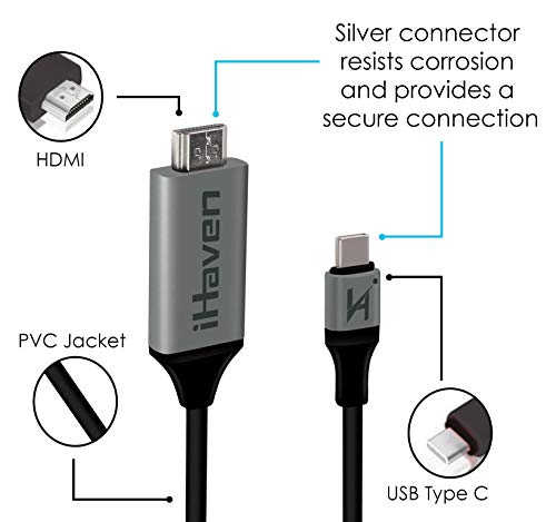 Ihaven USB C a HDMI Cavo di Piombo Telefono Portatile Thunderbolt 3 Tipo Alla Tv Convertitore 4k At 30hz per Samsung Galaxy S8 S9 Plus 9 8 Xiaomi Air Huawei P20 pro Mate Macbook 2016 2017 2018 Imac