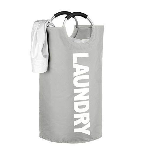 IHOMAGIC - Resistente portabiancheria pieghevole con manici in lega di alluminio e tela resistente Light Grey