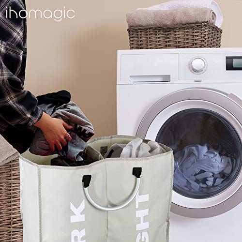 IHOMAGIC 2 Scomparti Cesto Biancheria Pieghevole portabiancheria della Biancheria Ceste per la Lavanderia Secchi Pratico casa Lavanderia, Dormitorio, 60L 53x23×53cm Sacchi da Biancheria Grigio