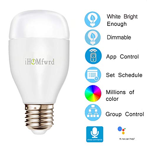 IHOMAnce, lampadina LED WiFi intelligente, funziona con assistente Alexa e Google, lampadina dimmerabile multicolore con cambio colore per sveglia, controllo via app (disponibilità e lingua italiana non garantite), hub non necessario, E26/E27 (equivalente 60 Watt)