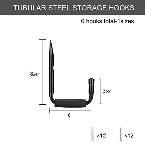 Ihomepark Ganci per Garage, Gancio per Bici da Parete Ganci Utility Resistenti, Garage con Braccio Jumbo, 6 Pezzi Appendiabiti da Garage e Organizzatore per Tubo Sedia Larghezza 15cm