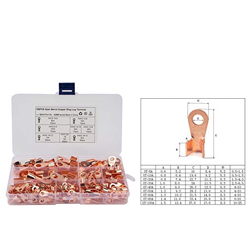 Ihreesy 185 pezzi kit di Capicorda ad Anello in Ottone, Capocorda ad Anello Occhielli ad Anello in Rame Capicorda Set Assortimento di Terminali ad Anello 5A 10A 20A 30A 40A 50A 60A 100A