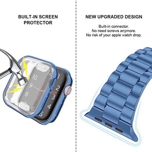 Iitee Compatibile con cinturino Apple Watch da 45 mm, serie 9, 8, 7, in acciaio inox, con custodia protettiva per iWatch blu/blu serie 7