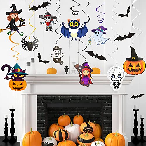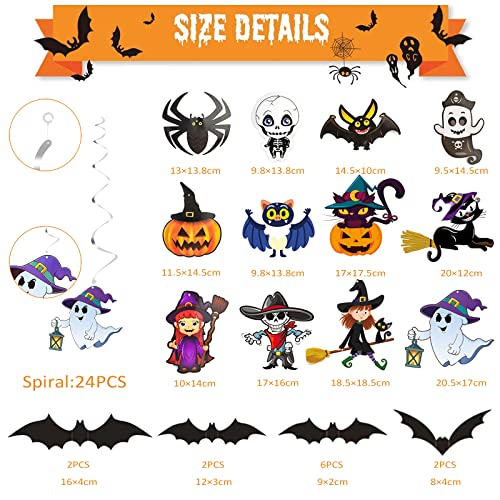 Turbinii di Halloween 48 Pezzi Decorazioni da Appendere Halloween Decorazioni per Interni Decorazioni da Soffitto Halloween Decorazioni da Appendere Halloween Pipistrello Zucca Fantasma Gatto Strega per Decorazione Festa di Halloween