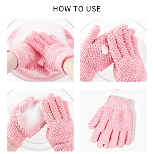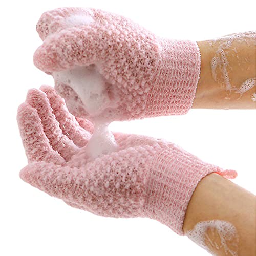 IJiZuo 2Pcs Guanti lavaggio Esfoliante, Guanti da Scrub, Guanti per Peeling Corpo, Esfoliante Guanto naturale Loofah Washcloth, Anche per Viso, Gambe, Peli Incarniti, Piedi(Rosa)
