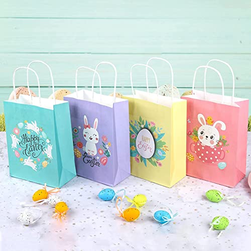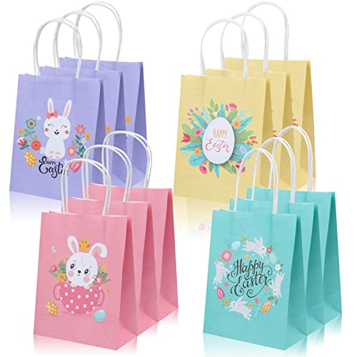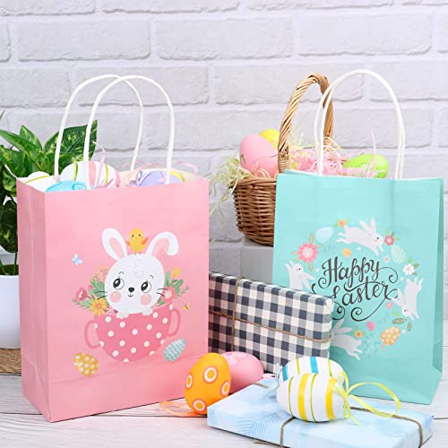 IJiZuo 12 Pezzi Sacchetti Regalo di Pasqua, Sacchetti Carta con Manici, Borsa di Regalo, Pasqua Sacchetti di Carta Kraft, per Feste a Tema Pasquale, Confezionare Regali per Bambini e Adulti