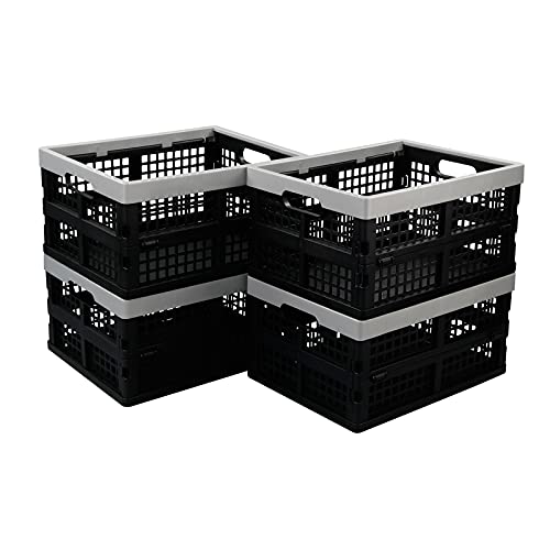 Ikando Plastic Crate Folding Storage Crates Box Stack Foldable Portable, Set of 4