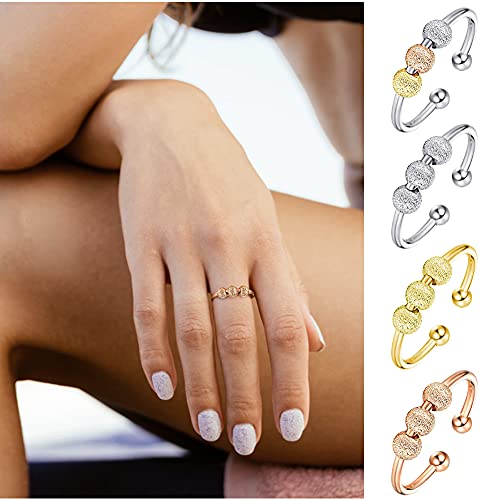 ★★ ❥ DESIGN UNICO: semplice anello da donna, ci sono 3 perle smerigliate sull'anello. Quando sei turbato, puoi alleviare lo stress e la tensione ruotando queste sfere per rilasciare lo stress.