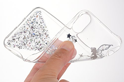 Ikasus Custodia per iPhone X, cover per iPhone X, con brillantini luccicanti, con cornice ultra sottile e flessibile, in silicone morbido TPU, per Apple iPhone X, colore: argento