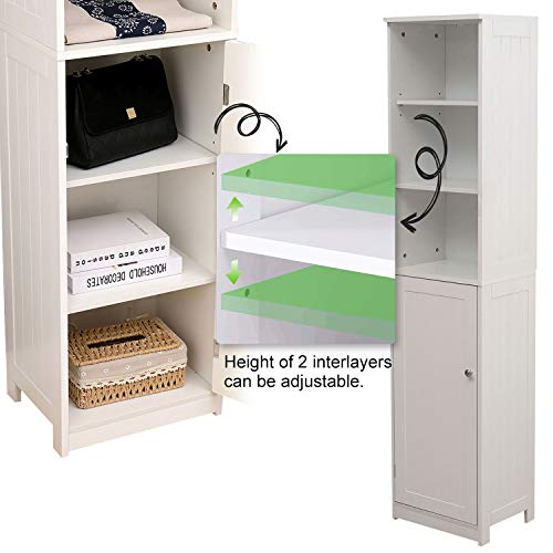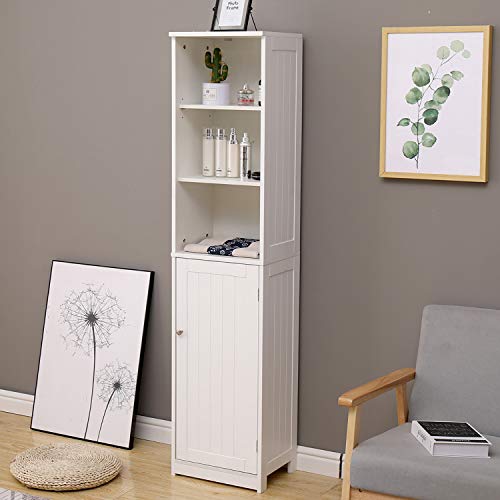 IKAYAA Armadio Colonna bagno,Mobile Alto per Il Bagno,Modern Tower Mobile Bagno Alto Mobile Bagno Verticale con 3 Griglie e 1 Ante,Bianco