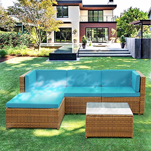 IKayaa Mobili da Giardino in Rattan di Vimini Patio W / Cuscineria Esterna d'angolo del Sofà Tavolo Set