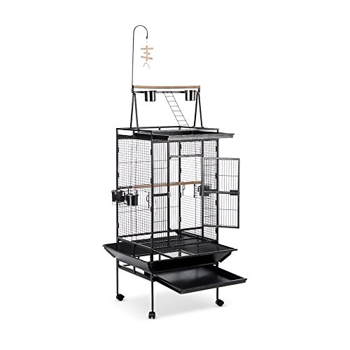 IKayaa Iron Bird Pappagallo Gabbia Grande Gioca Top Toy Macaw Cockatoo Parakeet Conure Finch Cage + In Acciaio Inox Bowl & Ruote Lockable