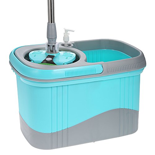 IKAYAA Spin Mop & Secchio Set 2 Mop Teste Stampa Tipo Acciaio Inox 360 ° Rotolamento Rotanti