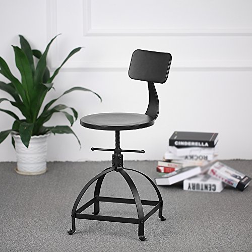 IKAYAA Tavolo Industriale Sgabello Bar Metallo Altezza Regolabile Girevole Cucina Sedia Pranzo W/Schienale