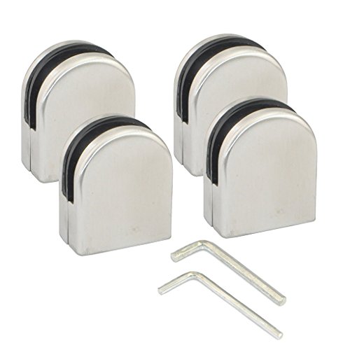 IKKEGOL 4 pezzi in acciaio inox rotondo 304 vetro clip morsetto Supporto superficie di vetro della finestra, Argento, 30141
