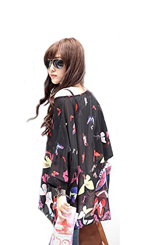 IKneu Donna Floreale Maniche a Pipistrello Boemo Beachwear Tunica Chiffon Camicetta Maglietta