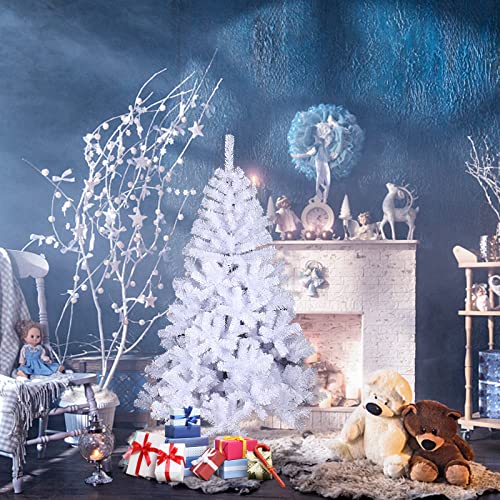 Ikodm Albero di Natale artificiale, 120cm con 200 rametti, Ignifugo, montaggio rapido, con cremagliera di plastica, per decorazioni natalizie, colore: Bianco