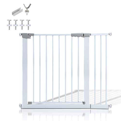 Ikodm Cancelletto di sicurezza con fissaggio a pressione, Per aperture tra 96-103 cm, senza foratura 90°, chiusura automatica, bianco, Bianco