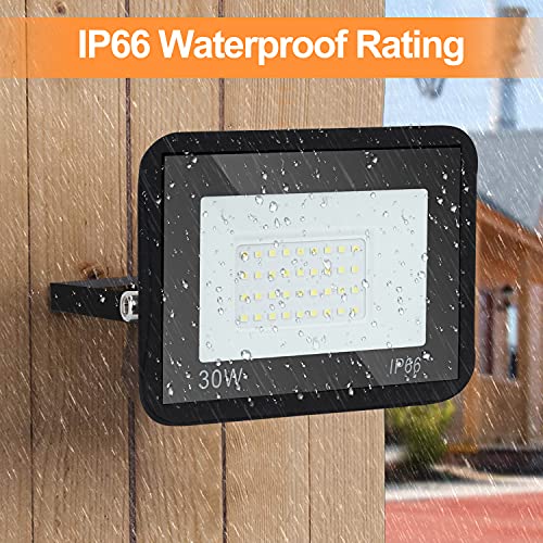 Ikodm 5er 30W Faretto LED per Esterni, 6000K Bianco Freddo, 2550LM Luce Esterna Super Luminosa, Illuminazione da Parete Impermeabile per Sportivo Campo Hotel [Classe di efficienza energetica A++]