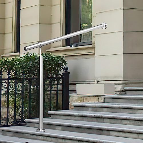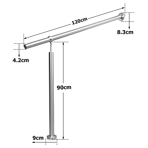 Ikodm Ringhiera d'ingresso in acciaio inox, ringhiera per scale, corrimano regolabile, con accessori, per interni ed esterni, per scale da giardino, 120 cm