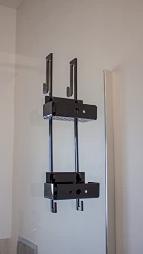 IKONA Porta Shampoo Doccia Nero Da Appendere In Plexiglass struttura sp.8 mm Con Ganci Per Asciugamani e Accappatoi | Prodotto in Italia (H. 65 x L. 20 cm x P. 10 cm) (NO VITI SMALL))