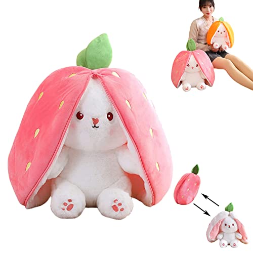 Ikoopetu Rabbit Muppet Toys,Strawberry Bunny Plush Easter Bunny,Soft Plushie Toys Cute Carrot and Strawberry Bunny,Rabbit Plush Toy Gifts for Girls (25cm/9.8in,Strawberry Bunny)