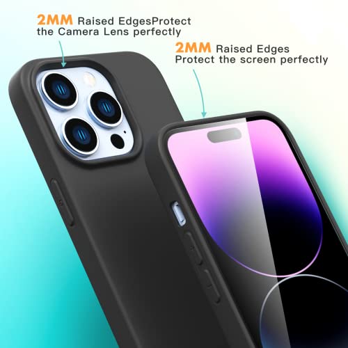 Ikziwreo Cover per iPhone 14 PRO + [2 Pack] Pellicola Protettiva in Vetro Temperato, Custodia Liquid Silicone TPU Cover Ultra-Sottile AntiGraffio Antiurto Case - Nero